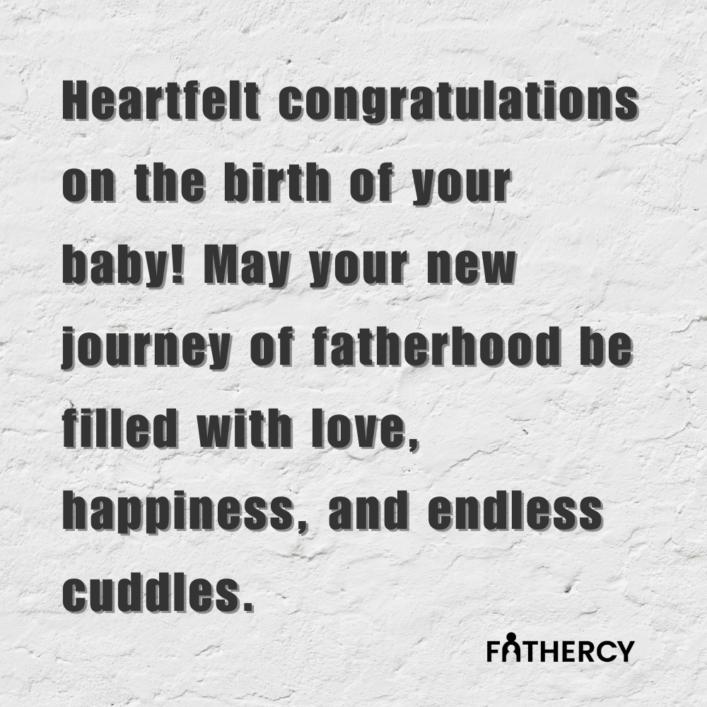 9. Heartfelt congratulations on the birth of your baby! May your new journey of fatherhood be filled with love, happiness, and endless cuddles.